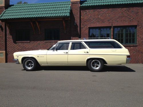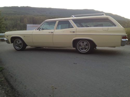 Very clean 1966 impala wagon. 283 with a 200r4 auto. This is a very nice non restored car that has had one repaint. The car is very solid. Items that have been replaced have been done with stock parts. The only upgrade is the 200r4 trans (instead of the power glide) which makes it drive very nice on hwy, and the radio is modern with a stock looking face.( No cut dash) The new stock parts include , windshield, carpet kit, dash pad, front seat cover, brakes, drums, tires, and misc tune up parts. The car runs and drives very nice, it has spent most of its life in AZ. The air conditioning even works and blows ice cold. Car has roof rack and dealer added compass and tissue dispenser. I have protecto plate , build sheet and manual for this car. I have owned a lot of nice cars, but I get more people giving me the thumbs up than any other car. Its very fun to drive, and chicks seem to dig it.is also for sale locally so I will pull add at any time if it sells.