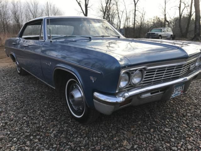SELLING FOR A GOOD FRIEND OF MINE, A 1966 CHEVY IMPALA 4 DOOR HARDTOP SEDAN. ITIS EQUIPPED WITH THE FACTORY 283 CUBIC INCH V-8 ENGINE, AND   THE FOLLOWING IS A BREAKDOWN OF EACH OF THE   ENGINE- RUNS SMOOTHLY, DOES NOT SMOKE AT STARTUP, OR GOING DOWN THEROAD. HAS A NEW CHOKE PULL OFF WHICH WORKS PROPERLY. ALSO HAS ELECTRONICIGNITION INSTALLED. ENGINE HAS NEW VALVE COVER GASKETS, AND ALSO A NEW OPTIMABATTERY. TRANSMISSION - ENGAGES SMOOTHLY, WITH NO JERKING. SHIFTS SMOOTHLY UPAND DOWN THROUGH THE GEARS. BODY- VERY CLEAN AND STRAIGHT BODY. HAS HAD ONEREPAINT, NOT SURE HOW OLD IT IS. IT IS   BUT HAS THEAPPEARANCE AND TEXTURE OF ORIGINAL ENAMEL PAINT. VERY FEW BLEMISHES, IT SHOWSVERY WELL. THERE ARE A COUPLE OF MINOR BLISTERS ON THE BOTTOM OF THE TRUNK LID.WHEEL ARCHES, ROCKER PANELS, FLOORS , TRUNK FLOORS ARE ROCK SOLID. PROBABLY ONEOF THE CLEANEST CARS I'VE SEEN AS FAR AS THE BOTTOM OF THE CAR GOES.INTERIOR - INTERIOR IS IN VERY, VERY NICE CONDITION. THE DOOR PANELS ARESTRAIGHT, WITH MINIMAL CRACKING. THEY HAVE FADED SOME, AND COULD PROBABLY USEREDYING IF DESIRED. HEADLINER IS MINT. CARPET IS IN GREAT CONDITION. DASHAPPEARS TO HAVE BEEN WRAPPED IN MATCHING VINYL, IT MUST HAVE SOME CRACKS IN ITAND WAS COVERED FOR APPEARANCE REASONS. THERE ARE SEAT COVERS ON THE SEATS, SO ICANNOT TELL HOW THE ARE COMPLETELY. FROM WHAT I CAN SEE AS I PULL THE COVERSBACK THOUGH, ARE THAT THEY ARE ACTUALLY IN PRETTY GOOD CONDITION OVERALL. THEARMREST ON THE DRIVERS DOOR WILL NEED REPLACED, A REAL CHEAP FIX. GL