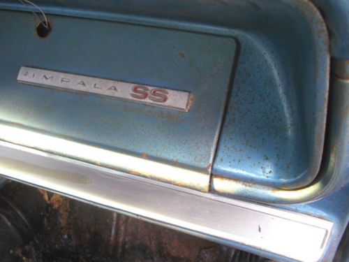 this is a true ss impala not a fake. it will need to be fully restored it does have rust on the rear quarter panels and frame under the front doors about the size of a half dollar. the engine is not a matching numbers. we checked them out and they come from a chevelle or corvette it does roll over but it is not running. the transmission is assumed to be the original 2 speed auto the interior will need to be restored as well the glass is in fair condition except the windshield. all of the sheet metal is in fair condition except for the rear quarters we can deliver this vehicle for a delivery fee.please contact me with question on shipping price for delivery message me with your info city,state and zip code you can also contact a shipper for a quote as well they will be about the same or possibly cheaper. we will sell this car international you will have to make all of the arrangement's with the shipper,ports and customs this car will be sold to the highest bidder after it meets reserve price. the winner will then have 48 hours to pay the deposit of $500.00 and 7 days to pay the remaining balance. if you decide not to purchase the vehicle for any reason you loose your deposit you will not get it back.the reason for the deposit is because if you do not pay for the vehicle we can loose a possible sale to other bidders. |