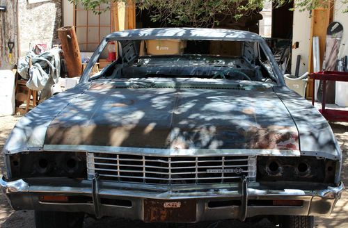 Here we have a genuine barn find. This is a 1967 chevy impala fastback. I started working on this car about two months ago and was unable to continue due to the resent purchase of my house. "The house comes first" at least that's what my wife said. Most of the body work has been done on this car (this usually retails between $3,000 and $6,000) so you are getting a car that is halfway restored.