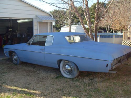 | 1968 impala 327 4 barrel, double hump heads, numbers matching, runs and drives, new left and right hand half quarters, new front floor pans left and right. trunk in great condition, no rust in body of car, it has been primed and blocked 2 times, very close to being ready for paint, windows all work, new carpet, dash in good shape, seats need recovered, door panels and back panels in good shape. i have all moldings and emblems and back bumper. needs new tires, lost interest. all the hard stuff is done and is ready for someone to finish. any questions call 931-446-2648 winning bidder responsible for pick-up and delivery. no first time bidders, if you dont have the money dont bid. no warranty as is condition. winning bidder must contact me directly after the ending of auction |