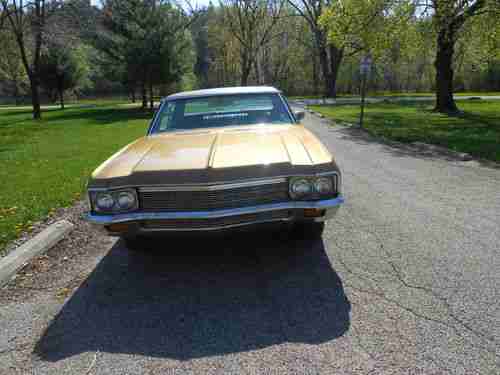 1970 Chevrolet Impala, 2 door gold , with black vinyl top, with black interior, and new 350 crate motor, with proper documents, also has new dual exhaust, car purrs with power.