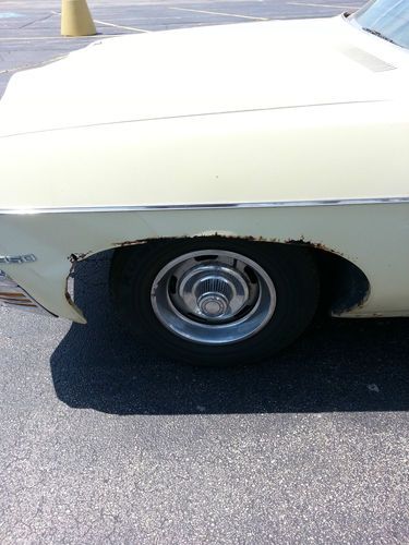 Here is a great 1970 chevy impala 350 V8 4barrel Dual Exhaust daily driver runs drives very nice we have just installed a brand new interior,Rare factory power seats,windows,tilt wheel it all works great.Will need a headliner,body work,rear bumper misc other body trim items tires are in good shape brakes are fine A/C not hooked up dont know if it works we have hooked up a switch for blower motor car does leak a little oil if sits for a couple days the right hand windsheild wiper clip is also broken also I have engine pics also I can email if u would like not enough space to list them just trying to be honest on what we know any questions please email me WE ARE ACCEPTING OFFERS AND CAN POSSIBLE SHIP CAR I have pics of engine just wasn't enough space in add 350 engine please don't expect a new car this is a great project car while u drive as u restore