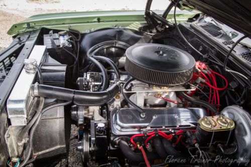 DRIVETRAIN: 383 Stroker Motor built by Blueprint Engines. It produces 429HP @ 4000RPMs and 437lb of torque. Has cast iron Vortec Heads. Also has a very nice Serpentine system with a new 3 row Aluminum radiator. A Miloden 7 quart oil pan was also installed. 6000 miles on motor. Intake is a Aluminum High rise, I believe it is a Victor. Carb is a 750 Edelbrock. Also has a chrome alternator and a trans cooler. This motor has a awesome sound to it. The cam has a great lope which turns heads when coming down the street. Distributor is a MSD with MSD coil and wires. Under the hood is very clean and looks great. TRANSMISSION: Tranny is a Turbo 350 3 speed with heavy duty parts and a B&M shift kit. Shift great with a nice little jerk at RPMs from first to second. Also has a 2200 stall convertor. 6000 miles on Tranny. REAREND: Rear end has 3:55 gears with a limited slip. Rear cover is a nice aluminum cover. 6000 miles on rear end. SUSPENSION: Suspension is a high performance Hotchkis system. Has a front and back sway bar system. Car drives like its on a track no drifting or pulling. Around corners there is no sway, car stays completely level. The underneath od the car has all been undercoated and is really clean. Also has new Edelbrock performance shock. Front end has a 2” drop spindle. The car sits really nice and handles and drives really nice. The ride is rounded out nice by stock Chevy Rally wheels and Mickey Thompson Sportsman S/T , P245/60R15 white lettered 60 series tires. INTERIOR The interior is almost completely flawless. Seats, carpet, headliner and dash are in almost perfect shape and all is original except front seat, which I was able to match with the original pattern and color. When I say almost perfect shape I mean that there is one small crack on the vinyl on the top of the dash. The crack is about 1/2 inch long and barely noticeable. I installed an old school Sun tach. All lights and everything on dash work great. Get this even the clock works and is correct within about 5 minutes a month. The heater works great also. Headliner and back deck are like new or better. Inside of this car like the outside is flawless. All glass and mirrors are perfect with no cracks or pits. In dash CD Player. EXHAUSTE: Long tube headers with Flowmasters to the rear with chrome tips. These pipes sound great. EXTERIOR: Outside of this car is beautiful. Paint and chrome are a 9.9 out of 10. Near the front there is one small rock chip that I have touched up but not noticeable. All the chrome is in like new condition The paint is a Seafoam Green. It is very sharp and has a great shine. The vinyl top is in perfect shape also. The rally wheels are aftermarket from Summit. The wheels are like new also. With the wheel behind the chrome has been painted the same color as the vinyl top. Really looks nice. This has been a California and Arizona car since new. Absolutely no rust at all. Car was always garaged with previous owner who owned it for 28 years, as it has always been garaged since I have owned it. Might consider partial trade and cash, Make me an offer. Tim, 760-937-1449 Click on video links below. http://www.youtube.com/watch?v=I1_IHMqG6VE&feature=youtu.be