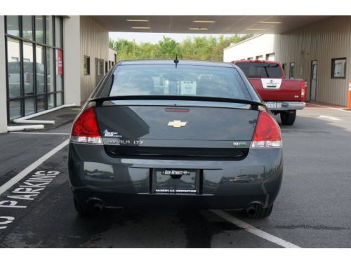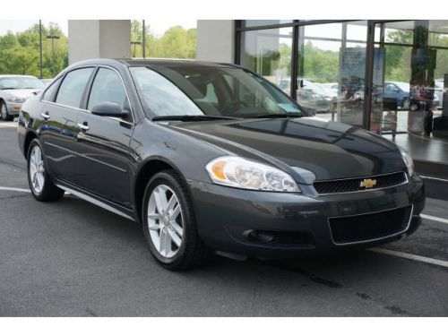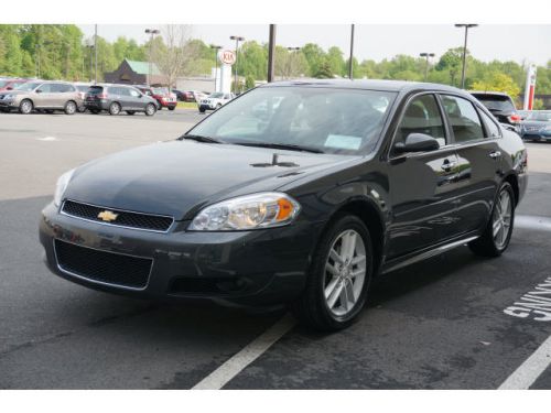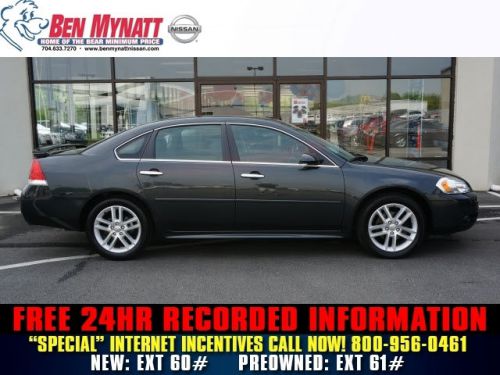 JUST REPRICED FROM $19,976, EPA 30 MPG Hwy/18 MPG City!, $2,500 below Kelley Blue Book! Excellent Condition, CARFAX 1-Owner. Heated Leather Seats, iPod/MP3 Input, Satellite Radio, Onboard Communications System, Dual Zone A/C CLICK ME!======EXCELLENT SAFETY FOR YOUR FAMILY: Child Safety Locks, Electronic Stability Control, 4-Wheel ABS, 4-Wheel Disc Brakes, Tire Pressure Monitoring System Safety equipment includes Child Safety Locks LTZ with Ashen Gray Metallic exterior and Ebony interior features a V6 Cylinder Engine with 300 HP at 6500 RPM*. ======AFFORDABLE: Reduced from $19, 976. This Impala is priced $2, 500 below Kelley Blue Book. ======VEHICLE FEATURES ~~~: Rear Spoiler, MP3 Player, Remote Trunk Release, Keyless Entry, Steering Wheel Controls. ======OPTION PACKAGES: SUNROOF, POWER with sunshade, TRANSMISSION, 6-SPEED AUTOMATIC, ELECTRONICALLY CONTROLLED WITH OVERDRIVE (STD), ENGINE, 3.6L SIDI DOHC V6 VVT (300 hp [223.7 kW] @ 6500 rpm, 262 lb-ft of torque [353.7 N-m] @ 5300 rpm) (STD), LTZ PREFERRED EQUIPMENT GROUP includes Standard Equipment. Maintenance up to Date. ======EXPERTS CONCLUDE: CarAndDriver.com explains Big outside, big inside, won't offend, people will assume you rented it, good fuel economy for something this big.. Great Gas Mileage: 30 MPG Hwy. ======WHO WE ARE: Visit us Today! Dealer Award Winner for outstanding sales and service in the Charlotte region. We are one of North Carolina's Largest Certified Nissan Dealers. Our team is professional, offers you a no-pressure environment and operates with the quality you expect. Prices do not include taxes, tag Pricing analysis performed on 6/3/2014. Horsepower calculations based on trim engine configuration. Fuel economy calculations based on original manufacturer data for trim engine configuration. Please confirm the accuracy of the included equipment by calling us prior to purchase.
