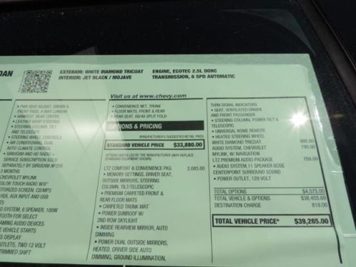 Heated Leather Seats, Moonroof, iPod/MP3 Input, Satellite Radio, Back-Up Camera. FUEL EFFICIENT 31 MPG Hwy/21 MPG City! LTZ trim READ MORE!======KEY FEATURES INCLUDE: Leather Seats, Rear Air, Back-Up Camera, Satellite Radio, iPod/MP3 Input, Onboard Communications System, Aluminum Wheels, Remote Engine Start, Dual Zone A/C, Heated Leather Seats MP3 Player, Remote Trunk Release, Keyless Entry, Steering Wheel Controls, Child Safety Locks. ======OPTION PACKAGES: COMFORT AND CONVENIENCE PACKAGE includes (KU1) ventilated driver seat, (KU3) ventilated front passenger seat, (UVD) heated steering wheel, (N38) power tilt and telescoping steering column, (A45) driver seat, outside mirrors and steering wheel memory settings, (UG1) Universal Home Remote, (B58) premium carpeted front and rear floor mats, (B36) carpeted trunk mat, (DD8) auto-dimming inside rearview mirror and (DLG) outside heated power-adjustable mirrors with turn signal indicators, ground illumination and driver-side auto-dimming feature, PREMIUM AUDIO PACKAGE includes (UQS) Bose premium surround sound 11-speaker system and (KI6) 120-volt power outlet, LTZ PREFERRED EQUIPMENT GROUP includes Standard Equipment, SUNROOF, POWER, TILT-SLIDING WITH ADDITIONAL SKYLIGHT FIXED GLASS AFT OF THE SLIDING GLASS with power sunshade. ======EXPERTS ARE SAYING: Great Gas Mileage: 31 MPG Hwy. ======BUY FROM AN AWARD WINNING DEALER: At the Orr Group in Texarkana, TX we treat the needs of each individual customer. We know that you have high expectations, and as a dealer we enjoy the challenge of meeting and exceeding those expectations each and every time. Allow us to demonstrate our commitment to excellence. Our experienced sales staff is eager to share its knowledge and enthusiasm with you. Horsepower calculations based on trim engine configuration. Fuel economy calculations based on original manufacturer data for trim engine configuration. Please confirm the accuracy of the included equipment by calling us prior to purchase. Orr Chevrolet in Texarkana is your Chevy Headquarters!*These prices include all applicable rebates through GM for Zip Code 75503. Although rebates are pretty standard everywhere, your location will ultimately determine which incentives you qualify for. We do not include accessories or dealer installed options in our pricing. Please call to confirm trim, mileage, options, and to ensure availability