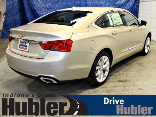 Heated Leather Seats, CD Player, Auxiliary Audio Input, Remote Engine Start, Telematics, Rear A/C. Champagne Silver Metallic exterior and Jet Black leather interior trim interior, LTZ trim. FUEL EFFICIENT 31 MPG Hwy/21 MPG City! CLICK ME!======KEY FEATURES INCLUDE: Leather Seats, Rear A/C, Back-Up Camera, Satellite Radio, Auxiliary Audio Input, CD Player, Telematics, Aluminum Wheels, Remote Engine Start, Multi-Zone A/C MP3 Player, Remote Trunk Release, Keyless Entry, Steering Wheel Audio Controls, Child Safety Locks. ======OPTION PACKAGES: COMFORT AND CONVENIENCE PACKAGE includes (KU1) ventilated driver seat, (KU3) ventilated front passenger seat, (UVD) heated steering wheel, (N38) power tilt and telescoping steering column, (A45) driver seat, outside mirrors and steering wheel memory settings, (UG1) Universal Home Remote, (B58) premium carpeted front and rear floor mats, (B36) carpeted trunk mat, (DD8) auto-dimming inside rearview mirror and (DLG) outside heated power-adjustable mirrors with turn signal indicators, ground illumination and driver-side auto-dimming feature, LPO, PREMIUM ALL-WEATHER FLOOR MATS, FRONT AND REAR, LTZ PREFERRED EQUIPMENT GROUP includes Standard Equipment, SUNROOF, POWER, TILT-SLIDING WITH ADDITIONAL SKYLIGHT FIXED GLASS AFT OF THE SLIDING GLASS with power sunshade. LTZ with Champagne Silver Metallic exterior and Jet Black leather interior trim interior features a 4 Cylinder Engine with 195 HP*. ======EXPERTS CONCLUDE: KBB.com explains Impala product planners believe that their newest creation has the prerequisites to get them back in the game, and after driving the Impala extensively, we tend to agree with them.. Great Gas Mileage: 31 MPG Hwy. ======MORE ABOUT US: After more than 50 years in business, The Hubler Auto Group Horsepower calculations based on trim engine configuration. Fuel economy calculations based on original manufacturer data for trim engine configuration. Please confirm the accuracy of the included equipment by calling FREE Window Tint OR Unlimited 1 Year CarWash Pass with any vehicle purchase.* Central Indiana's LARGEST Chevy Dealer! We have great finance rates and rebate incentives available on our new vehicle inventory! Call us today for the details at 866-856-4211. Our Internet Customer Care Team is on-hand to take your call! *Some restrictions may apply. See dealer for details.