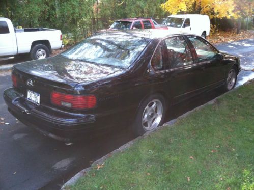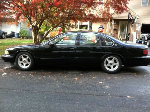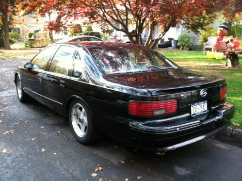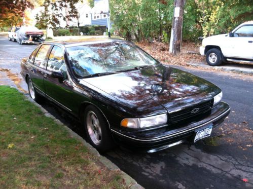 FOR SALE IS A 1994 CHEVY IMPALA SS. I HAVE OWNED IT FOR THE LAST 4 YEARS. IN THAT TIME I HAVE PUT A NEW WINDSHIELD, BATTERY, SERPENTINE BELT AND CAT BACK JEGS EXHAUST. IN THE 4 YEARS I HAVE MAYBE PUT 1000 MILES ON IT. IT RUNS GOOD TRANS SHIFTS FIRM. THE BODY IS DECENT IT WILL NEED A HOOD AND PAINT JOB THE ROOF AND TRUNK LID LOOKS LIKE IT HAS HAIL DINGS IN IT. THE TIRES HAVE ALOT OF TREAD PUT THERE STARTING TO DRY ROT. THIS IMPALA IS A GOOD CAR FOR RESTORATION. IF HAVE ANY QUESTIONS EMAIL ME AT B57SAP@CS.COM