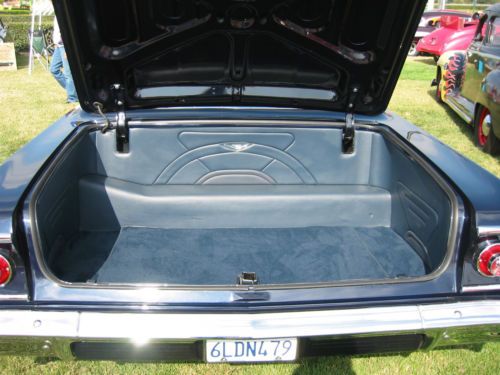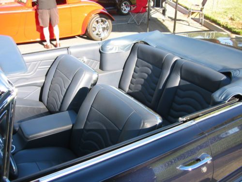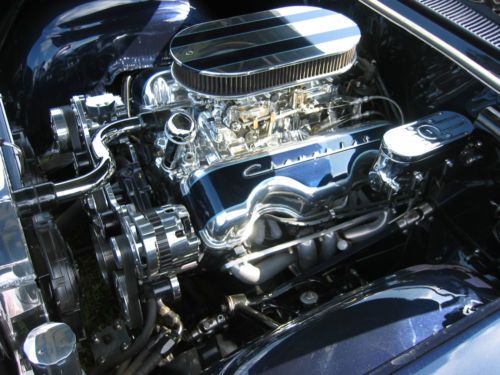 The frame has been smoothed and powder coated gloss black as are the suspension parts. All corners have Wilwood disc brakes and slotted rotors. The body is lazor straight and all the trim and grill have been chrome plated. All glass is new. The dash is Dakota Digital and has a Vintage Air unit. The engine is a rebuilt 348 W motor with a 700R4 trans. Dual Edelbrock carbs and manifold are with Dura Shine and Billet Specialties air cleaner. The valve covers are custom made from PML. The front runner system is from Billet Specialties. The headers are Sanderson and the complete exhaust system has been coated. The rear end is a 10 bolt with 4:10 gears and posi traction. The interior is all dark blue leather and custom seats in the rear with original buckets in the front. The convertible top is dark blue, and has a glass window, and powder coated framework. The trunck is upholstered in dark blue to match the interior. Wheels are from Budnik and are 18 in the front and 20 in the rear. If you have any questions feel free to call me at 818-402-3469 or email me at sales@proetchproducts.net. A $1000.00 deposit is required with full payment within 7 days of sale. Credit cards are accepted for deposit with wire transfer, cashiers check, or cash on balance. Sale price of $78,500.00 OBO with trades plus cash considered.