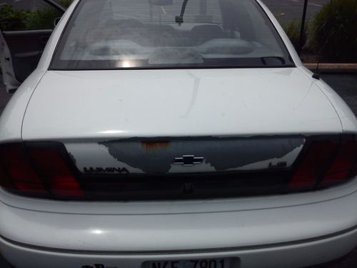Up For auction is a steady running lumina. The car runs and drives, which is currently my commuter back and forth to work, but its time to let it go. I wont try to make you think this car is a cross country ready to drive with no problems vehicle, it could use some work, but i drive it as is. Im not a mechanic or claim to be but i would guess off back i know the wheels could use a alignments, some rear shock/strut work, crack in the windshield, ac blow cool not cold, heat works fine, rear driver window dont roll down and as you see in the pics the body has its imperfections . The engine and transmission has given me no problems starts easy and shift smooth, thats the only reason im listing and not junking, because i think this car can do somone some good. I got the car on a two car deal, so i said why not drive it for the time being, but the insurance and maybe future maintence is not fitting my budget right now so here we go. Starting the bid low with no reserve so winner takes it..thanks for looking and may GOD bless.