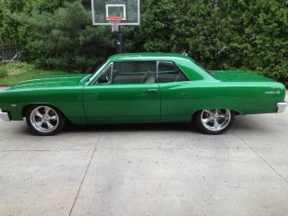 This radical custom Malibu was sponsored by Flowmaster and featured in a national advertising campaign. It has won numerous awards and has been featured in many publications. Painted in Extreme Green and features a custom Bone color interior. The body has received many modifications as well as the interior. The awesome sounding 327 provides plenty of power. Other features include an automatic transmission, Eaton posi rear end, power steering, power brakes, 3" ceramic coated exhaust & much more. Under 800 miles since completion.