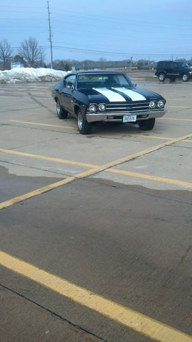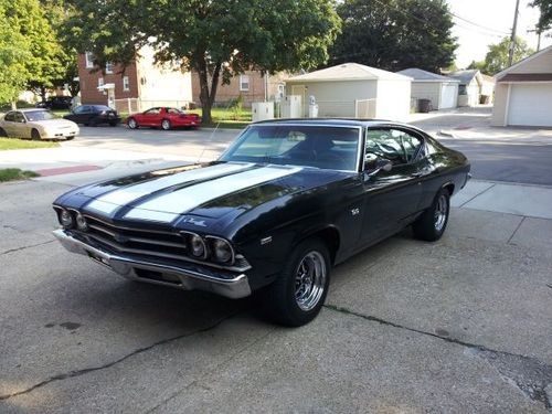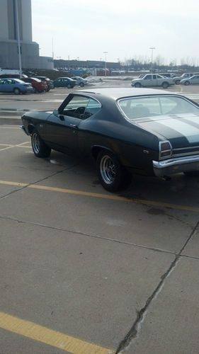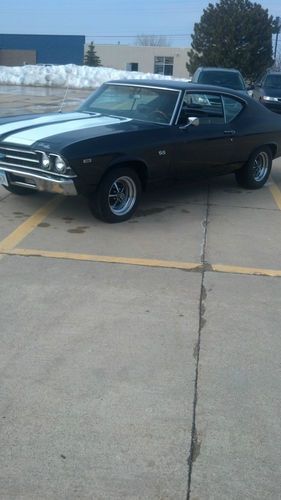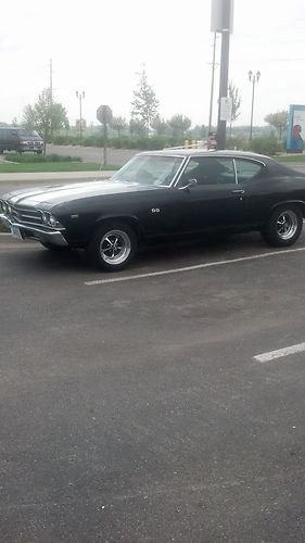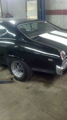 1969 Black Chevelle Malibu. Not SS, just has a few ss emblems. 350 small block with a turbo 350 transmission.