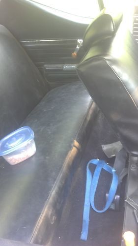 Black bench seat interior with a B&M auto on the floor shifter. Car has a cd player and kenwood 6x9" rear speakers. Has a few small rust spots on the passanger quarter and door. Paint is old. Car was green with green interior. Someone changes the colors to black.