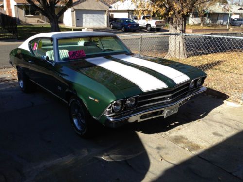 1969 CHEVY CHEVELLE IN GREAT SHAPE BEAUTIFUL CAR NICE INTERIOR NICE EXTERIOR I DID ALOT OF WORK I HAVE THE PAPER WORK TO PROVE WHAT I DID TO THE CAR ---------------------------------------------------- 916 912 1109 OR 916 225 5210 NEW PAINT AND BODY WORK I PAID A LITTLE OVER 8000 JUST ON THE PAINT AND BODY WORK . INTERIOR COLOR : GM WHITE IN GREAT SHAPE NO CUTS EXTERIOR COLOR : FACTORY GREEN WITH WHITE RACING STRIPES NEW GM WHITE VINYAL TOP MOTOR TYPE : 350 V8 MOTOR RUN'S SUPER CAR HANDLES GREAT FACTORY A/C FACTORY POWER STEERING ORIGINAL MILES : 46K IF YOU NEED MORE INFO CALL 916 225 5210 OR 916 912 1109 ANYTIME |