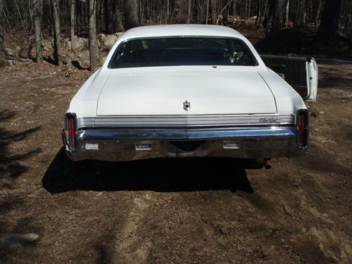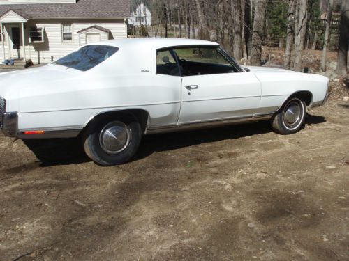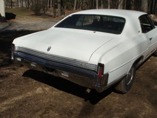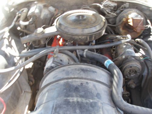 Car is factory 350. Working air conditioning. Car has all tinted windows. All glass is good. Body is extremely nice. Very little mud. Car never had a vinyl top, so around windows are perfect. Just had carbuerator (2-barrel) rebuilt. New a-frame bushings on passenger side. Exhaust is good. The bad: gas gauge doesn't work. Needs trunk lock. Rear bumper has a couple dents. Interior: front and rear seats in perfect condition. Rear door panels are nice. Dash probably has a couple cracks. Car needs rug, headliner, and door panels and visors, all due to heat damage. Car to be sold with Arizona title and clean transfer paperwork. Call Paul for more information or with any questions. 603-772-6353. |