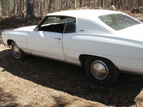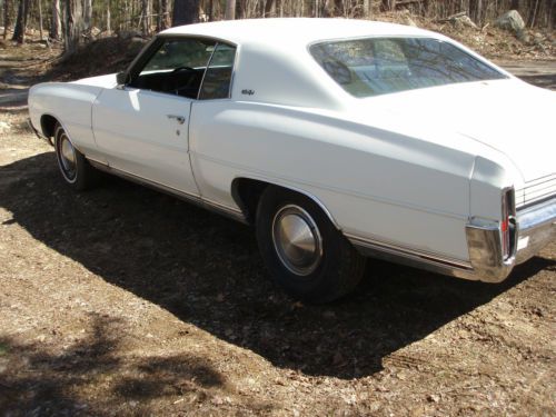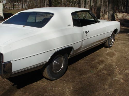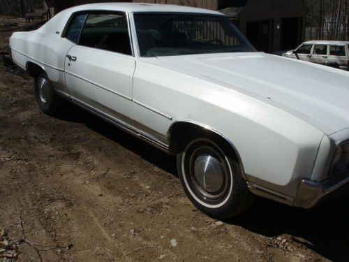 1972 Chevrolet Monte Carlo from Arizona. Undercarriage is 100% rust free. Car runs and drives strong. Tires are not that great.. Car had 1 repaint to white. Was originally green on green. Top of roof paint peeling from heat.