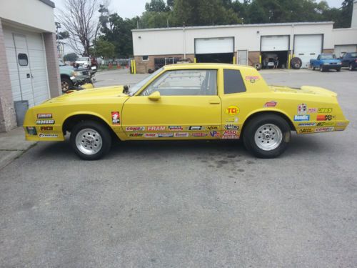1981 MONTE CARLO, 12 BOLT POSI REAR WITH SPOOL 4:56 GEARS WITH LADDER BAR SET UP, ROLLING CHASSIS AUTO METER GAUGES, 8 POINT ROLL BAR, LEXAN WINDOWS. NO ENGINE OR TRANSMISSION.
