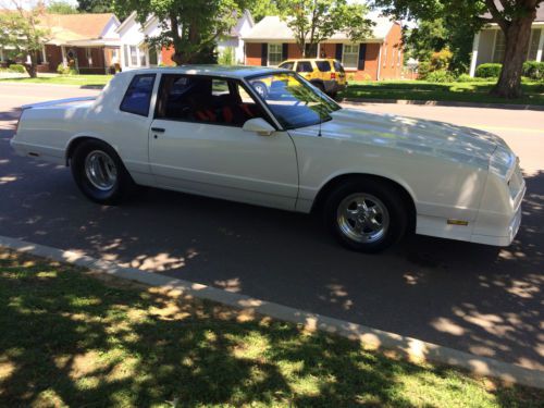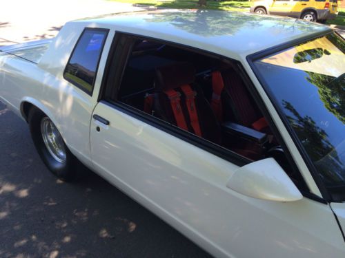 FOR SALE: 1988 Chevrolet Monte Carlo SS Pro Street This is a genuine Super Sport as evidenced by the letter G in the eighth position of the VIN. This car is powered by a Chevrolet ZZ502 crate motor that makes more than 500 horsepower! The motor is fresh and it has logged less than 1000 miles since it was unpackaged and installed in the car. A Hurst ratchet shifter puts you in control of the built Turbo 400 automatic transmission that shifts smoothly. The car boasts a Ford 9-inch rear end and 4.11 gears. The car is tubbed to accommodate a great pair of Mickey Thompson Sportsman tires mounted on polished Weld ProStar wheels. The front tires (Mickey Thompson) and wheels are brand new. The 502 is set up to be fed with a 150 horsepower shot of nitrous. The car is finished in pearl white hue that was originally found on Cadillac Escalades. The paint is driver quality. The maroon interior remains close to original even with the modifications seen. To ensure safe enjoyment, a pair of 4-point G-Force harnesses and a roll cage have been installed. The car features a Pioneer Premier head unit with a CD player and Sirius XM capabilities along with a 12-inch Alphasonik subwoofer powered by a sufficient amplifier. The car runs and drives great and it is a certain provider of worry-free enjoyment. This car is ready for anything that you can throw at it. The car has never been raced but I do know that the car has a considerable amount of power and torque. The car does not present any reliability issues and the 502 fires the first time, every time. As you probably guessed, this car is not for the faint of heart and that is evident after looking at and hearing the car. This is a professional build and it should not be mistaken for anything less. If you have any questions pertaining to the car or the purchase process, please contact me at (270) 748-1882 with a call or a text. The car nor the title will leave my possession until I have received the full purchase price amount in cash, wire transfer, or cashier's check form. if you choose to ship the car, the shipping expenses will be your responsibility but I will accommodate any shipping arrangements that you may make. The car is for sale locally and as the owner, I reserve the right to end this listing at any time. This listing carries a modest reserve that invites bidders to bid to win. Thank you for your interest! |