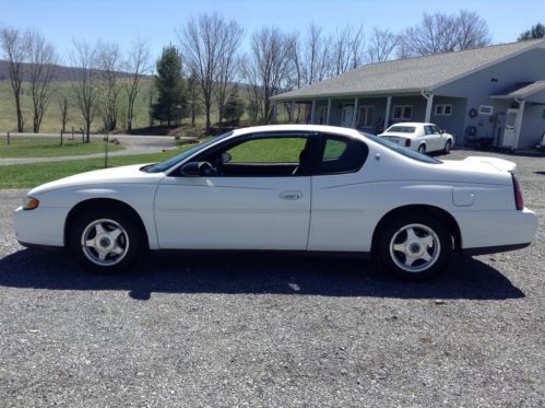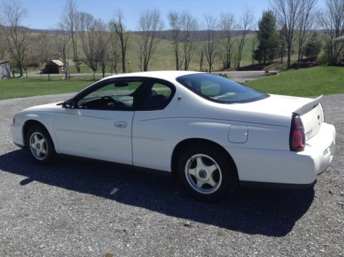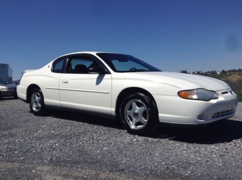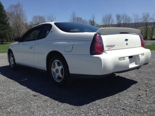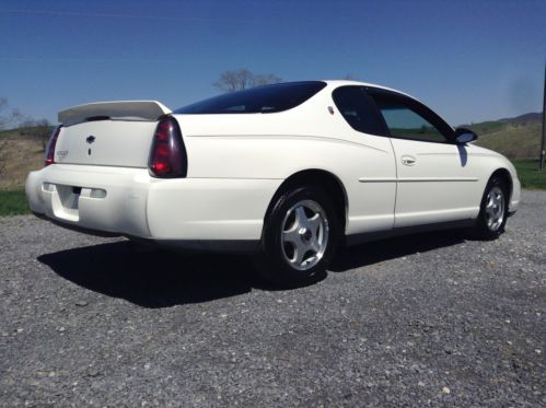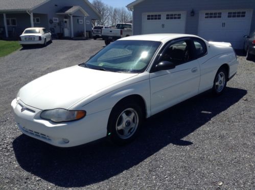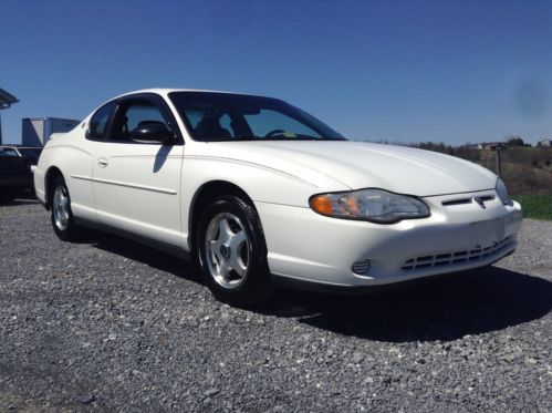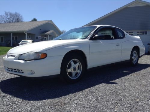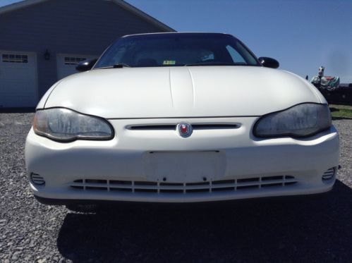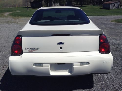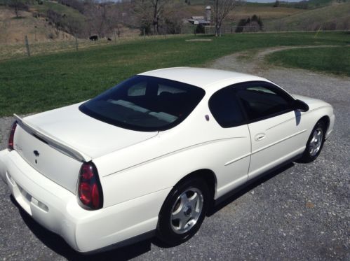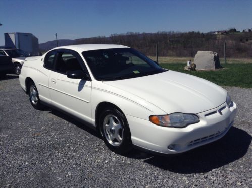 Up for bids is a 2002 Chevrolet Monte Carlo. This is a very clean, nice, sharp, sporty Monte Carlo. If you've been looking for a nice car at a great price this is it. This car has the 3400 engine with the automatic trans. The engine runs great and the trans shifts fine as they should. The AC and all options work as they should. I did notice the drivers window up button has to be finessed a little but always works, just got to move it just right, this is an easy fix if it bothers you. The interior is very nice with no rips or tears and only minimal fading and no major stains. The carpet is nice and no major staining anywhere. Door panels, dash pad etc are all good with only normal wear for a 2002 model. All in all the inside of this Monte Carlo is above average condition guys, you would be pleased with it. The exterior paint is very nice and shiny. The rear bumper has a small damaged spot on it but its nothing major, think theres a pic of it. The only rust on the car is a very small place in the front edge of the drivers side rear wheel well, not sure what caused that unless it got nicked at some time, it has been touched up to keep it from getting worse. Again not major at all, just wanted to mention it so you will know exactly what youre bidding on. This Monte Carlo has the spoiler on the trunk which really adds to the looks of this car. Theres also a black and red pinstripe down the sides that looks nice also. The exterior of this car guys is very clean and the trunk and door jams are also very clean so you know this car has been well taken care of all its life. The wheels are nice with only minimal clear coming off as they all do after awhile, tires are about new. Guys and gals that's about all I know to tell you other than if you are the winning bidder of this sharp Monte Carlo you will be very pleased. This car has a very high NADA book value so the buy it now is a steal on a car this nice so don't miss out. If you have less than 10 positive feedback you must contact me before bidding or I will cancel your bid. Also I reserve the right to end the auction early should it sell locally. Checkout my feedback guys as its well over 550 and all good. You don't get great feedback like that if you lie and cheat people, I tell it like it is. Rest assure youre dealing with an honest ebayer. If you need this car shipped I can help with that also or the car can sit here awhile till you can arrange to pick it up as long as its paid for according to the auction terms. Also the car has a clean, clear WV title ready to go. Thanks for looking and good luck should you decide you decide to bid on this very nice, clean, 02 Monte Carlo.