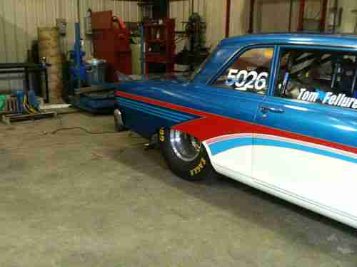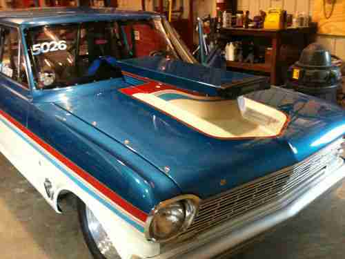 1962 Chevy II Nova Professionally built campaign NHRA former Supre Gas Car, would make a great Pro-Street Car. 477 Aluminum head motor with H-beam rods, knifed crank. Strange front suspensions with coil overs, wild wood disc brakes all around. New chute, new 3-gallon jazz fuel cell. New slicks on rear, new front runners, 1150 Davinci carb. New fab shop custom headers, side fender exit. Fab five rear end assembly. Car certified to 750. New Kirkey aluminum seat fits 250 lb. 6' driver. Little wizard delayed box with cross top. All new auto meter gauges and MSD 7AL-2 ignition. Car weighs 2227 lb. less driver. Car runs consistent 5.90 in the 8th. Up-to-date funny car style roll cage out of chrome moly, done by Andie Smith of Pro-tree Race Cars Indiana. New belt harness. Removeable front end, hood, fenders, deck lid are fiber glass. Paint done by Doug Graphics. Car is very clean.