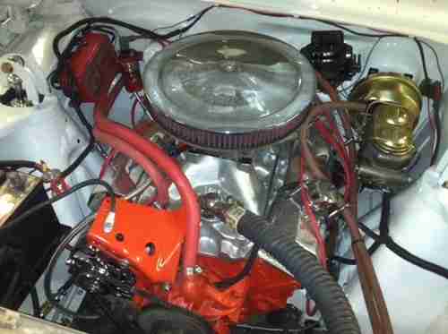 355 sbc four bolt main , speedpro flat top pistons, magnum comp cam .525 , double roller timing chain , heads have been ported, weiland intake 750 Holley, msd ignition 6al box coil and distributor , bm shifter , powerglide trans. With transbrake, 8" stall , griffin radiator , Electric fans. Car is running and moves.