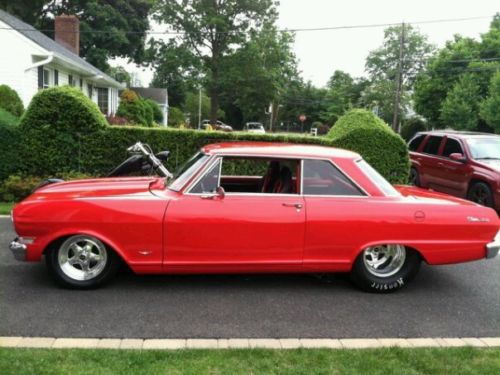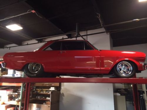 1964 pro street chevy nova . Street legal , 421 small block chevy with power glide . 4 link rear , 10 point cage , full box chassis . Ford 9 inch rear , no expense spared . Car must go ! way to much to list . Car was built last year . Never seen track Car has 31x18.50 rear tire , 10 point mild steel cage , with no door bars , 15 gallon cell . auto meter gauges , car made 715hp to flywheel . 4.88 gearing , disc brakes in front , and drums in rear , paint in flawless , fiber glass hood and rest in steel , cars weighs apox 2800lbs . Any question just email me and I will get back to u asap Little M Block Ati Converter 4500 Holly Carb 1000 gz vacuum pump electric water pump magna fuel pump brodix 18 degree heads eagle crank , eagle pistons mild steel cage . |