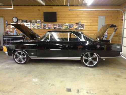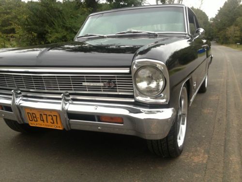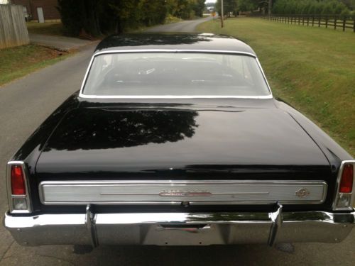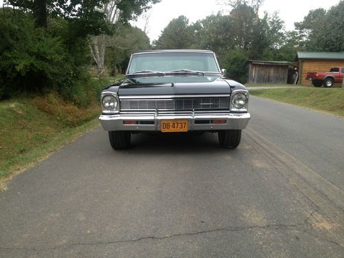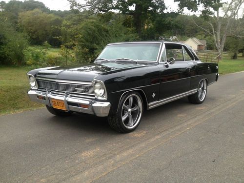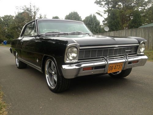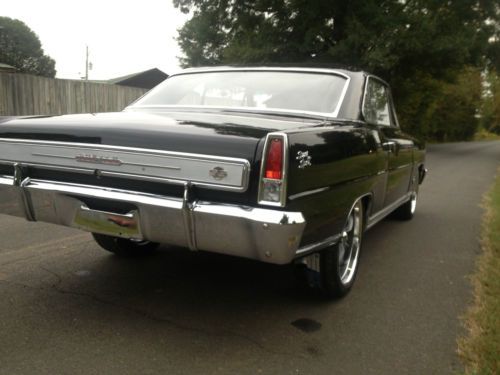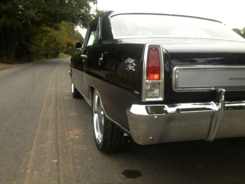 1966 chevy ll nova super slick black paint with black interior. The car has a 400 small block with headers, nice team G intake, dressed with lots of chrome. It has a Muncie 4 speed trans. The car has 18' and 20'in wheels which give it a good stance. This is a solid car no rust issues. Nothing ever cut or put in the body. The interior is in great condition, with bucket seat and console. This is a car that can be driven not just for looks. For more info please call me 770-608-8775 thanks thomas