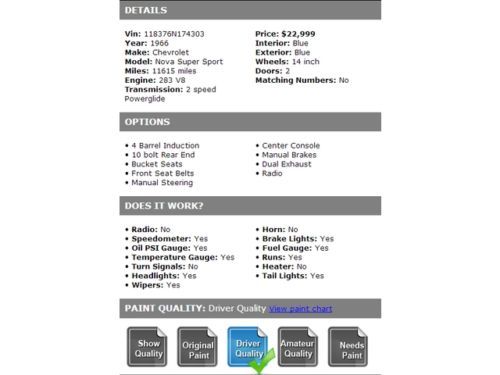 1966 Chevrolet Nova Super Sport 283 V8 Automatic Console Check This One Out on 2040-cars