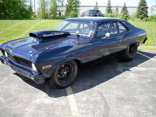 1970 Chevy Nova DRAG CAR professionally built! This car runs 8.40s with a 250 shot. The body is very straight and paint is flawless! all brake/headlight/turn signals work. This car has done only 15 passes on the track half of them were licensed runs half track. I was gonna run this car in the 8.90s class but i have no time for it. This car comes with 3 hoods a cowl, Aero and prostock hood. HERE ARE SOME VIDEOS OF THE CAR GOING DOWN THE TRACK!! TRADES CONSIDERED IF YOU HAVE ANY QUESTIONS/INTEREST PLEASE CONTACT ME AT 1262-993-0204