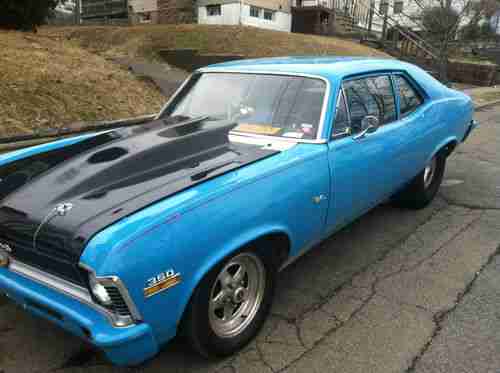1972 Nova SS Tubbed Pro Street, BBC with TH400 Trans with Forward manual shift Valve..Car has 4 wheel disc brakes, Ford 9" rear with 31 spline Mosher axles Just replaced new, 411 Gears with spool rear..Rear tires are 33/21.5/15 MT Street Tires..Front Tires are skinny's..Now I drive this car as a street car and have never had it at the race track, but imagine if you wanted to take it to the drag track it would be a awesome fun car to take down the track..My wife and I just had a Baby and thats the only reason I am consider selling or trading the car off for a more street friendly car..Would only be looking to trade for other Hot Rods or Street Rod cars..Now I purchased the car almost a year ago the way it is..Was told the Engine was a 540 BBC I have not had the engine apart so I'm not 100% sure of internals in the engine..Car runs awesome, and very loud and fast..Them huge tires will turn with just a little press of the gas..The car will run great on 93 Octane, But there are times I will go to the local Speed shop and Grab a few gallons of 110 Octane to mix in..And car seems much happier, but lke stated will run great also just on the 93 Octane..Most of the stock interior is in tack, Does have 2 racing seats up front, NO BACK SEAT, As car is Back Halfed..Door panels are intact will need head liner if you so desire, but never bothered me..all Lights and Blinkers work fine..Car is Pretty Solid over all with very few imperfections that could be fixed or just be driven the way it is..I don't get to drive the car much, but when I do bring it out I get stopped all the time for people to look at the car take pics and get high compliments..I'm setting a buy it now but am open to any serious offers..And or trades..But please don't waiste my time if your just a tire kicker or dreamer..I have a few Video's of the car I will post in the ad thats on youtube..And if you have any additional questions please feel free to contact me at 607-205-5449 By TXT or call..TXT Preferred, and would be answered to quicker, but if you call and I don't answer please leave a message and I will get back to you..Thank you..Also other pics available on request..I could txt them email them or send them how ever you would like to recieve them..Video posteed below, and you can get to 2 other video's through the link..