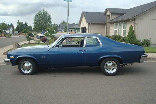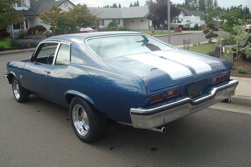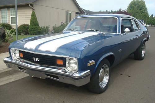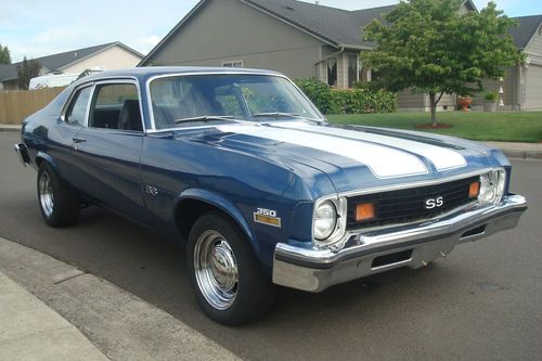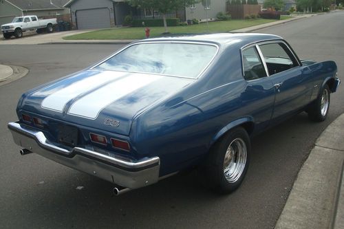 1973 Chevy Nova SS. It has a rebuilt 327 CI engine. It is followed up by an automatic transmission. The motor runs great and the transmission shifts great. It has Power Disk brakes in the front. It is also a power steering car. The car has an Edelbrock carburetor on it so it idles great. The car is very street-able and loves to be driven. The interior of the car is black. It has brand new carpet, and package tray. The interior isn't perfect, but its great for cruising and being used. The body of the car is nice and straight. It has nice body lines and does have new weatherstripping. It is the original color blue with white racing stripes. The car has new paint on it. It was a base/clear paint job that has been wet sanded and buffed. The could use a little more cleaning as there is still a little bit of buffing compound here and there. Rims and tires are great. It has dual exhaust. The floors, and frame are solid, they are better than the pics make them look. If you have any questions call 651-208-5196