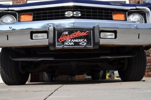 Always garaged, rare American Muscle! 1974 Chevrolet Nova SS Original 350 ci engine Original TH350 transmission One year old professional paint and body work (pictures available) 2012 Kona Blue paint (Offered on 2012 Ford Mustang) All emblems either new or restored HEI Supercoil Ignition minor shift kit ShiftWorks Tachometer TMI leather center console New gas tank, brake overhaul, tires, carb/intake and much more Speaker boxes seen are removable, forgot to take them out for pictures. Missing center cap has been replaced Have placed in every show entered! MESSAGE FOR DETAILS |