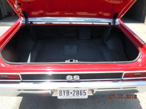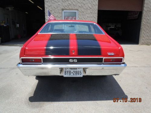 THIS IS A 1971 NOVA SUPERSPORT I HAVE GOTTEN AS A PARTIAL TRADE FOR MY 71 CHEVELLE SS 454LS6 M22 ROCK CRUSHER,IT HAD ONE RUST SPOT ON EACH REAR QUARTER PANEL THAT I HAVE CUT OUT AND REPLACED WITH 18 GUAGE STEEL AND REPAINTED BOTH QUARTERS AND ROOF THAT WAY THERE IS NO BLEND LINES THIS CAR IS VERY SOLID AND THE TRUNK AND UNDER CARRIAGE IS PERFECT I HAVE JUST PUT NEW CLASSIC AUTO AIR/ AND HAS A 1 YEAR WARRANTY AND IT BLOWS COLD COLD COLD ANY QUESTIONS CALL RUSSELL AT GROUND ZERO CUSTOMS AT 817-226-3574 OR CELL 817-875-0886