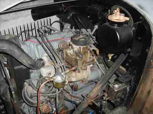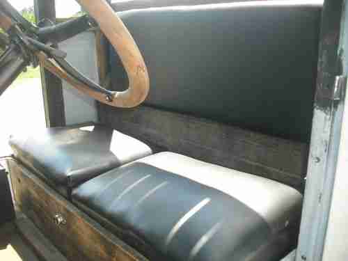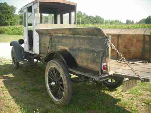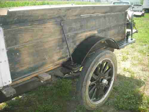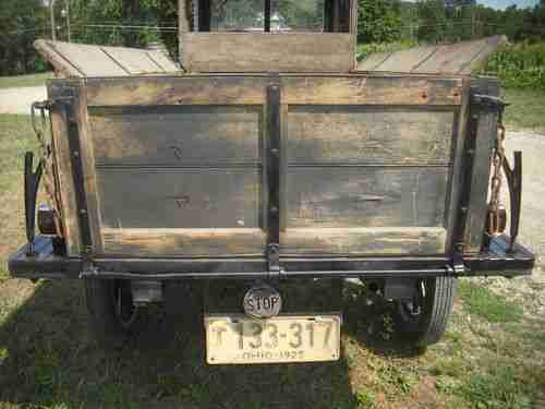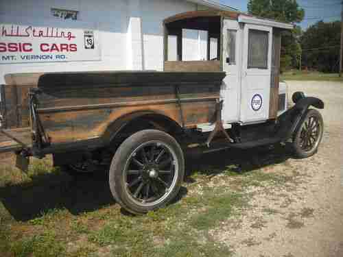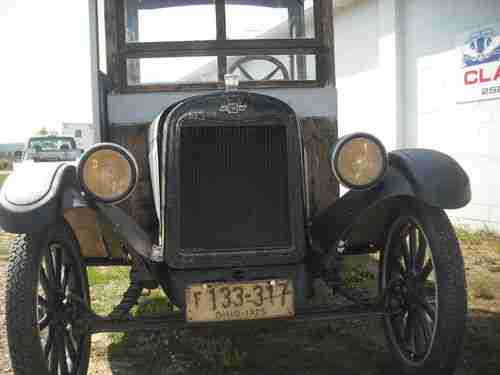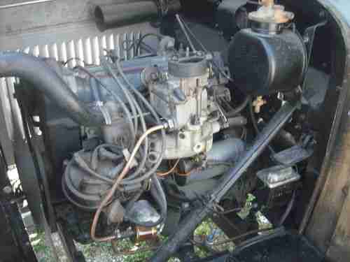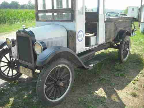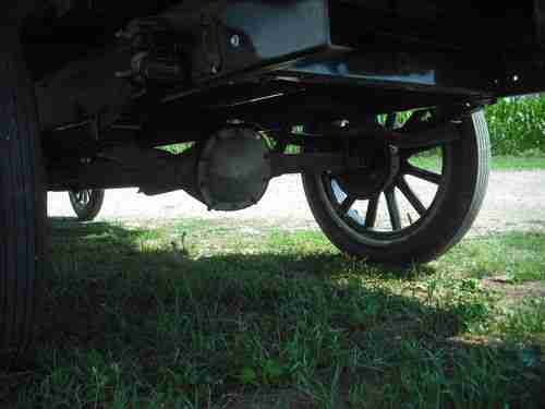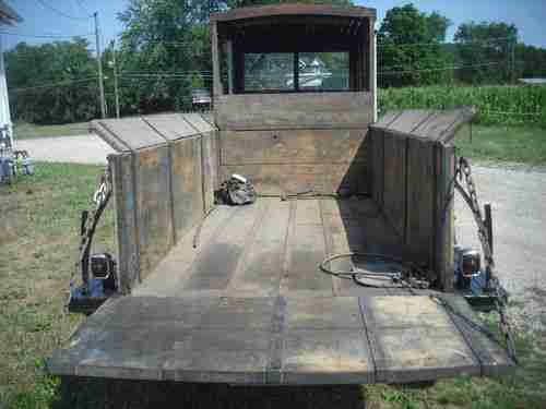 We painted and reassembled the chassis and installed a 4-cyl. Chevrolet Chevette engine and automatic transmission. This combination runs well and makes this truck much more driver friendly. We DID NOT alter the frame or original engine mounts. The original engine could be reinstalled after you rebuild it. It has a new radiator, 12 volt altenator and hydraulic brakes to the rear axle which was taken from an S-10 pick-up. Once again No modifications were made that prevents the original mechanical brakes and rear axle to be reinstalled. They are included. We had spindles machined so the rear wheels and tires could be used. The tires have no miles on them but they are 30 yrs. old. The wooden wheels were restored in the eighties and look great.The cab is mainly wood and in very solid shape. "Pocket" style sliding doors are in good shape. They will need a couple of peices of flat glass and a new vynl top cover made. The wooden bed is 9 ft long and in very good shape and resembles an old conastoga wagon without the top. The front fenders have some rust but are usable plus 1 extra fender comes with it. The truck runs and drives good, the carb needs some adjustments from setting. The truck needs painted and the top recovered. A very rare Truck with complete history. It would make a great promotional or parade vehicle.