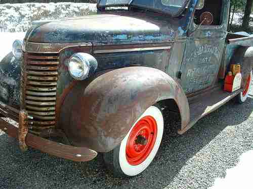 Original unmolested gas/service station shop truck from Pelham, NH. 4 digit phone # still on the door. Correct date coded matching # 216 motor, carb, distributor, starter, and generator. The truck was built in Jan, 1940 at the Tarrytown, NY assembly plant. The casting date on the block is Dec 7, 1939(see pictures). Unlike many so called shop trucks this one wasn't fabricated to look like one. It's the real deal. The starter and Carter 420S carb have been rebuilt. That is as far as I have got and have not attempted to start it. The motor turns over with the battery(not included). Pre war chevy art deco pickups are getting harder to find, especially the 1940, a one year only model. My plan was to get the truck in sound mechanical condition and drive it as is, but other issues have put that on hold and I am reluctantly selling the truck. It hasn't been on the road in years and expect to do a complete restoration. Some of the issues of many would be, replacing the wiring, rust repair, most of the glass replaced, windshield frame replacement(a good used frame and gasket is included, brake system and more. The inner top windshield wiper panel was discarded because of the typical mice damage these trucks incur at that location. The rims and tires will be replaced with rollers that hold air. This old pickup has patina that only Mother Nature could give it. You won't find another.