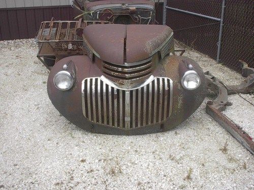 Cab, doors, front clip, running boards, front bumper, seat, gas tank,