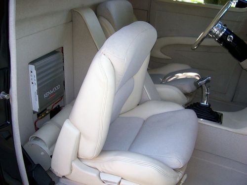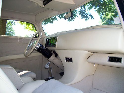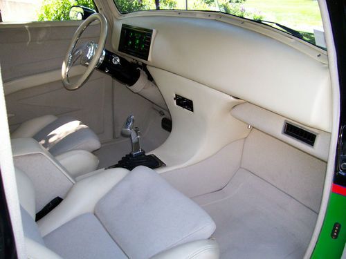INTERIOR: Bone color tweed and leatherette. Dodge Daytona bucket seats. Custom made console from dash to rear cab wall. Overhead console with Kenwood sound system. MTX speakers with Bazooka sub woofer and amp. Tweed headliner and floor. Sculptured doors without latches and handles. Painted milled aluminum cluster with Dakota digital gauges. B&M console mounted shifter. Vintage Air - air and heat. Power windows. Cruise control. Tilt column with Budnik wheel.