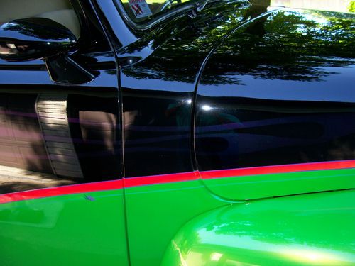 PAINT: Black and green with gold pearl and orange candy and many other candies and purple ghost flames. All stripes go through doors, smoothed fire wall and underside of hood.