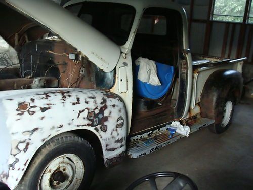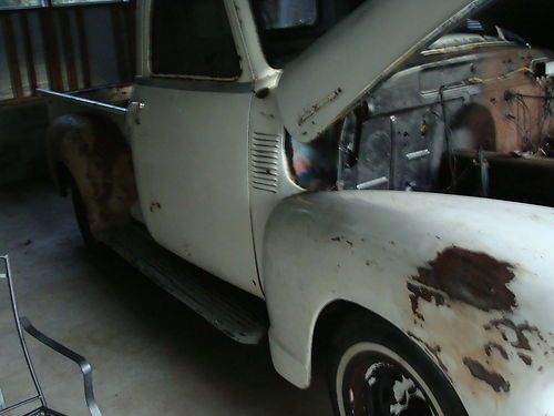 1950 chevy truck or rat rod short bed white need restored floor panels are rusted and need replaced glass on one door is cracked truck cab and fenders are in good condition. i have a extra heater box and all the trim parts fan blade and rear bumper brackets are missing great project to restore $2750.00