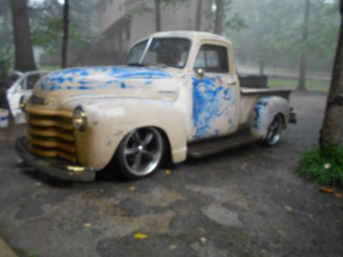 cool ole 1952 chevy truck.frame has been build for 7 years camaro front and rear .new wiring harness dolpin guages tilt wheel p/b p/s heater.heathly 350 with a small cam sounds great.350 turbo trans.18 and 20 boss wheels 338 blast to drive gets looks were ever you go .past NSRA safety inspection in 2009.only thing thats changed since the wiper motor when out.all glass good all lights led taillights and coo;er does go with it