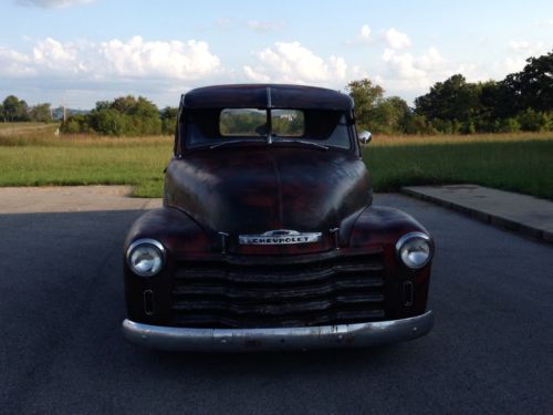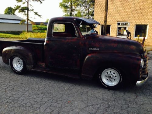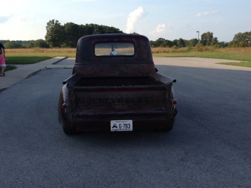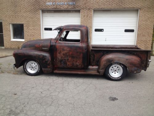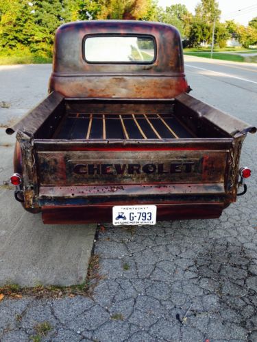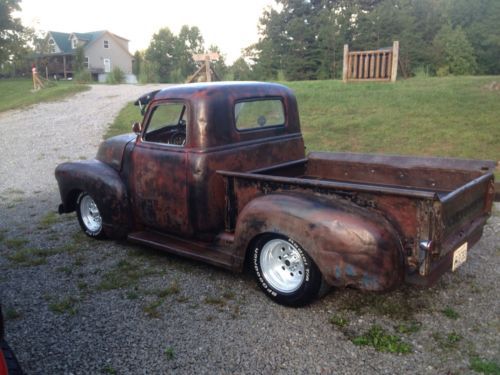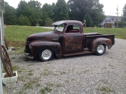 Up for auction is my 53 Chevy rat rod pickup. It has a 355 with aluminum heads and a small cam. Has lots of new parts. New carb, new wheels and tires, new radiator and fan with trans cooler, new exhaust 3" flow masters, new tach and gauges. Transmission is a 400 turbo with a 2400 tci stall. It is sitting on a late model s10 frame with a blazer rear end with 3:73 gears. Has custom roll pan and adjustable truck visor. Has weld draglites, 10s in the rear and 5s in the front. Has power steering, power brakes, disc in front. Runs and drives and stops good. Great cruiser. It is a rat rod, but not super rough. Body has been cleared to save patina. Door handles have been shaved and has poppers located inside the doors. Was going to install electric door poppers but never got around to it. That's why it doesn't have door glasses. Have taken detailed pictures to show condition of truck. Email with any questions. Thanks for looking. Call or text Steve at 606-310-1954. Only reason for selling is that I am building another truck. I set a low reserve considering what these trucks are selling for. Serious bidders only please.