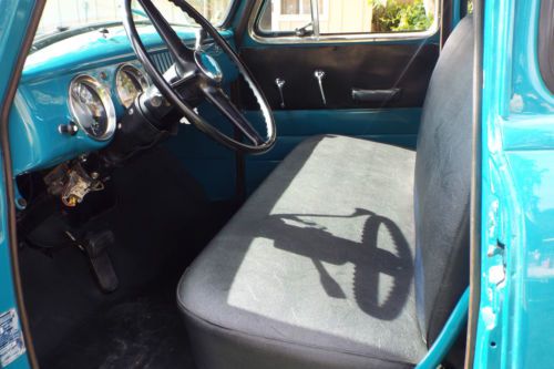 ............NO RESERVE..............Super clean 1954 Chevrolet "5" window pickup truck raised in California and it shows. This truck has been loved it's whole life. Recent work done is a newer rebuilt GM 6 cylinder 250 cc motor. Turbo 400 automatic transmission, power steering, all new shocks and suspension, all new brakes and lines, new leaf springs, new interior, detailed under carriage, new Centerline wheels, newer tires. The 1954 and 1955 Chevrolet trucks were considered the last of the Classic advance design trucks from Chevrolet and were they ever popular. Today they are bringing between $30,000 and $75,000 at auction as people want a piece of AMERICA at it's best. This "5" window is ready to enjoy going to dinner or a ice cream run on a nice summer evening or watch people wave and give you the thumbs up when you pull into Home Depot to pick up some poseys for the garden. This is a super truck but was painted many years ago so there are some chips, scratches and dings in it and can be driven and enjoyed as it is or be given a fresh coat of paint to be a show winner. Over $25,000 was spent in upgrades to bring this classic "5" window Chevy to this point and I am selling it at ...NO RESERVE....... so please do call with any questions before bidding as the high bidder will own this great piece of AMERICAN history. YOU WILL LOOK GOOD AND FEEL GOOD DRIVING DOWN THE ROAD IF YOU ARE THE WINNER ON THIS CLASSIC TRUCK THANK YOU......(805) 206-1284 |