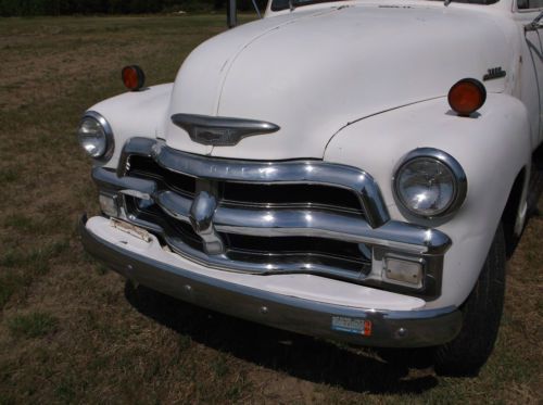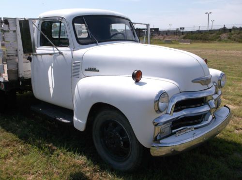 Up for auction is a very straight and original 54 chevy 3800 one ton truck. This is a rare original condition truck that runs and drives. Has 235 6 cylinder that starts right up and runs excellent. 4 speed transmission and dually rear end. This truck has an older repaint that is faded but very solid. Has a very nice chrome grill that really shines. One dent in center of chrome divider. Glass is all good but door seals and felt are showing some cracks. Has chrome west coast mirrors and a trailer hitch with electrical plug in. Very very little rust (only spot showing is in front of drivers door that was previously fixed and shows some staining. 7.00x18 rubber that is in good condition. Very nice stake bed that is 10'x8' with good wood floor. Bed has removable sides. Overall truck is very nice original shape that is fun to drive. Please ask any questions you might have before bidding I would be happy to call a phone number to further describe this vehicle. I also have other 47-54 trucks and parts available. All shipping charges are responsibility of the buyer but I can do what I can to help with loading. International buyers are welcome and item can be containerized to ship. I expect $250 non-refundable down payment due within 24 hrs of end of auction payed via paypal. Balance due with paypal,wire transfer,or certified funds before shipping or pickup.
