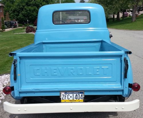 1954 Chevy Pickup Great running original Chevy straight six cylinder engine with three speed on the column. PA State inspected and ready to go. Good, solid truck. Floor and frame are extremely clean. Chrome is original,dull and pitted but not rusted. This truck has 70800miles on it, everything works. Converted to 12 volts, also has electric two speed wipers. I would driver this truck anywhere. Truck sold as is shown in the pictures and described, ask questions and I will be happy to answer. |