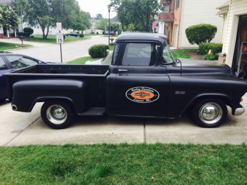 1955 Chevy pick up 3100. RUST FREE no bondo work. 454 engine. 400 turbo automatic transmission, 3:42 ratio 12 bolts differential. Power breaks, power steering, air bag suspension, custom exhaust, new tank, new seats and restored interior. Custom exhaust (has you can see from the pictures. The whole truck has been linexed out, every panel, flooring, roofing, bed, engine compartment, under the truck you name it. It has a1980 C10 frame. This truck is a beast and looks mean. Painted flat black, the only rust you see is the one painted on to give it the sleeper look. All electrical, lights, stereo, air ride works. Issues: Little crack on lower passenger side front window, speedometer don't work, slight warping to the bed and few minor scratches on the body. No trades!!!