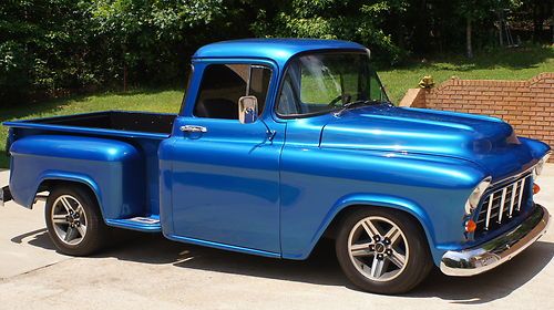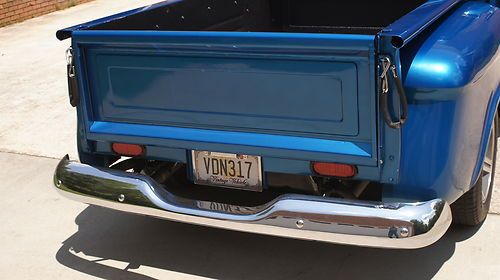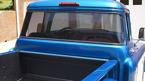 This is a 1957 Chevrolet Pickup Big back window, I've just finished building this truck and ready to start another project. The paint is new and the color is Wave Blue, the interior is grey with grey carpet. Gauge cluster and gauges are new. Vintage Air with heat/defrost and a/c. AM/FM stereo with CD player. Seat belts, Power brakes,power windows, power steering, 4 wheel disc. brakes. Engine is an 2004 LS1 out of a GTO with about 35,000 miles. 4L60E Auotmatic Transmission (rebuilt). 3.08 Pontiac rearend limited slip. The frame has been boxed. Fuel tank has been moved to rear of truck under the bed and the fuel filler cap is in the fender. Iroc wheels with polishes spokes. Bed floor is steel and out of a late model truck with sprayed bed liner.