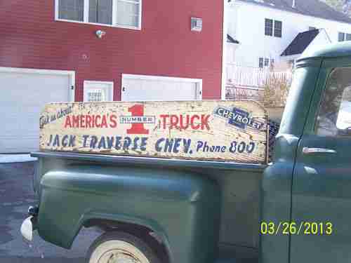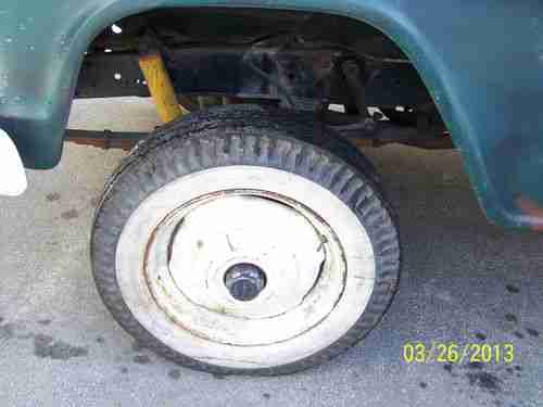 This is a factory installed NAPCO 5400 GVW with a riveted cross member. It also has 17.5 " wheels. The wheels are more rare than the truck. The condition of the truck is as follows: the body has it's typical rust and would need cab corners but the worse part is the amount of dents in the cab. The rear fenders I just replaced with some nice used ones I had here. The front fenders and hood are also nice and can be reused in the restoration. In my opinion, the driver's and passenger doors would be best replaced; they are pretty much rust free but they have many dents. The engine is an original 235 and runs great. The transmission seems to shift fine and the four wheel drive parts seem fine. The seat has been recovered and the only thing that the truck needs to be road worthy is to finish hooking up the lights. This truck is a very desirable 1/2 ton, short bed and I think could be worth $40,000 - $50,000 when finished. The truck comes with the tires that are in the back. They are 16" factory wheels with new Coker tires. The Chevy signs on the truck will not be included in the sale. I would be interested in selling them separately. They are cool. This truck was found out in the desert of Arizona and must have been worked by a miner out there.