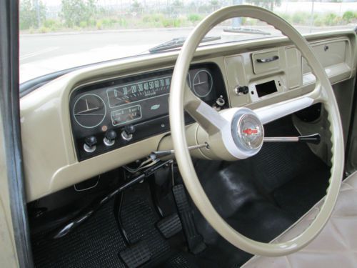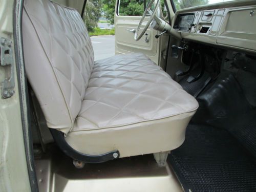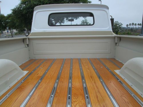 Here is a very nice solid truck .It has a inline 250 three on the tree good running daily driver ,.motor is strong rebulit tranny, brand new tires .Band new oak wood and stainless strips and nuts and bolts.I have painted engine and engine compartment all lights blinkers work, heater windshield wipers guages all working. Original floor mat seat was redone some time ago .Has two small rust through holes both on passenger side under rocker and door look at last too pictures .Clear clean title in hand,thanks for looking.for more info (310) 261-4353 |