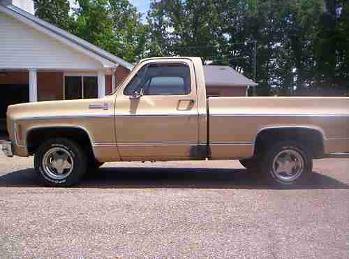 1978 Scottsdale 10. I am 3rd owner of this local truck. 350/auto 4 speed overdrive 4L60, pb,ps, factory gauges with rare tachometer. Upgrades include- autosound radio with pioneer speekers, custom cloth seat, eddlebrock 850 carb, intake,valve covers,dual exhaust, new radiator. This is a clean strait truck but has a few rust spots mainly in the pass fender, as pics will show. Drives and runs very well. I can't load pics now so call me and I will text or email plenty of pics.. 205 602 8093.