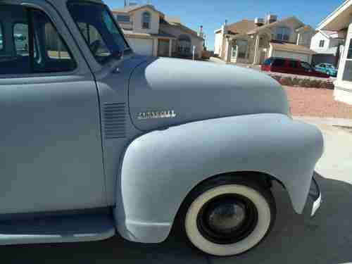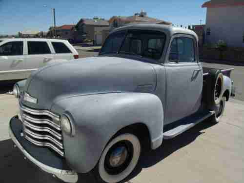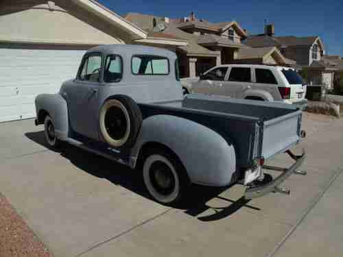 This is the one!! 53 Chevy pick up 5 window(curved). This is a very clean recently primered classic truck with black upholstery.It has a rebuilt engine with 0 street miles after the rebuild. Its a 6 cylinder, manual transmission with gear shift on the steering column. It has a new floor panel. This truck is smoothly primered throughout the entire truck inside and out, the frame is painted black. It has new tires and rims and an additional tire/rim mounted on the side as a spare. It has 2 new muffler pipes, 1 new glass pack. It has original baby moons.It has a new rear chrome bumper and new rear bumper brackets. It has a New Front Chrome bumper, also new bed of oak wood. The Frame is uncut and free of rust or cancer.The body is stripped down to metal.For more information you call (915)613-6618, ask for Ruben no advertisements or trades please